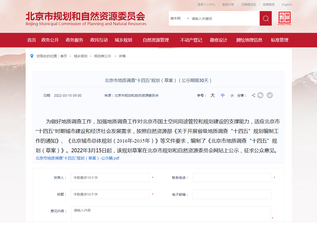 地大熱能地?zé)?多能互補(bǔ)網(wǎng)訊:《北京市地質(zhì)調(diào)查“十四五”規(guī)劃(2021—2025年)(草案)》(以下簡(jiǎn)稱《草案》)3月15日起在市規(guī)劃自然資源委網(wǎng)站公示,聽(tīng)取公眾意見(jiàn),公示期30天。《規(guī)劃》提出,北京市將率先對(duì)首都功能核心區(qū)地?zé)崮?/a>等開(kāi)展綜合地質(zhì)調(diào)查評(píng)價(jià),提供地質(zhì)安全保障。社會(huì)公眾對(duì)該《規(guī)劃》如有意見(jiàn)建議,可在4月14日前登錄北京市規(guī)劃自然資源委網(wǎng)站留言。
