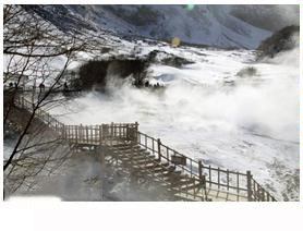 | 聚龍泉位于長白山北坡,大約距長白瀑布900米的地方,在10Cm平方米的地域,有30多眼泉水噴涌而出,經(jīng)科學工作者測定,水溫最高可達82℃。這里,不論冬夏,總是熱氣蒸騰,霧氣繚繞,特別是嚴寒的冬季,在皚皚白雪的襯托下,溫泉更是云遮霧障,猶如神秘的仙境。溫泉附近長年沉淀下來的礦物質(zhì),有紅、褚、黃、青、綠等等顏色,好似美麗的陶瓷。一種清淡的硫磺味在空氣中飄浮。還有珍珠似的氣泡冒出水面,吐出開鍋似的聲音。 如果細心觀察,溫泉附近的草還是鮮活翠綠的!只要游人高興,還可以在大雪紛飛中露天野浴,實在是妙趣橫生。 |