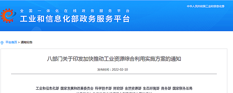 地大熱能地熱+多能互補網(wǎng)訊:2月10日,工業(yè)和信息化部、國家發(fā)展和改革委員會、科學技術部、財政部、自然資源部、生態(tài)環(huán)境部、商務部、國家稅務總局等八部門聯(lián)合印發(fā)了《關于印發(fā)加快推動工業(yè)資源綜合利用實施方案的通知》(下文簡稱《通知》)。