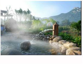 河南省欒川九龍山溫泉風(fēng)景 九龍山溫泉泉水恒溫69.5℃,時(shí)流量56噸,水中富含鉀、鎂、鈣、鍶、鋰等27種礦物質(zhì),微含惰性氣體氡和放射性元素鐳,對(duì)風(fēng)濕、類風(fēng)濕、心腦血管病后遺癥及婦科、皮膚科常見(jiàn)病的浴療效果顯著,被譽(yù)為中原第一泉。