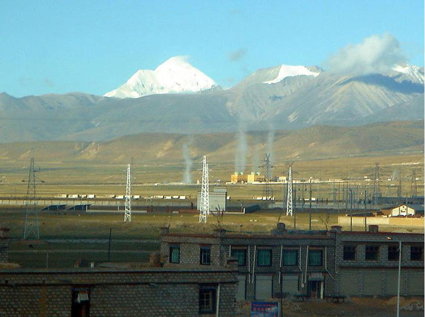 羊八井,即羊八井鎮(zhèn),位于西藏拉薩市西北91.8公里的當雄縣境內。熱田地勢平坦,海拔4300米,南北兩側的山峰均在海拔5500~6000米以上,山峰發(fā)育著現代冰川,藏布曲河流經熱田,河水溫度年平均為5℃,當地年平均氣溫2.5℃,大氣壓力年平均為0.06兆。附近一帶經濟以牧業(yè)為主,兼有少量農業(yè)。青藏、中尼兩條公路干線分別從熱田的東部和北部通過,交通尚為方便。