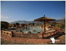云南下關(guān)溫泉風(fēng)景明童軒《德勝關(guān)溫泉》詩(shī)云:蒸蒸本元?dú)?,澡雪人?zhēng)浴。雖無(wú)澤物功,遠(yuǎn)勝貪泉屈。大理下關(guān)溫泉在山谷之中,背依附者摩山,峭石噻巖壁立,面臨大理西洱河岸,河水洶涌奔騰;庭院之中,設(shè)有大理亭閣游廊,遍植花木,四季花香,環(huán)境幽雅,景色宜人,下關(guān)溫泉是人們休假療養(yǎng)的場(chǎng)所。